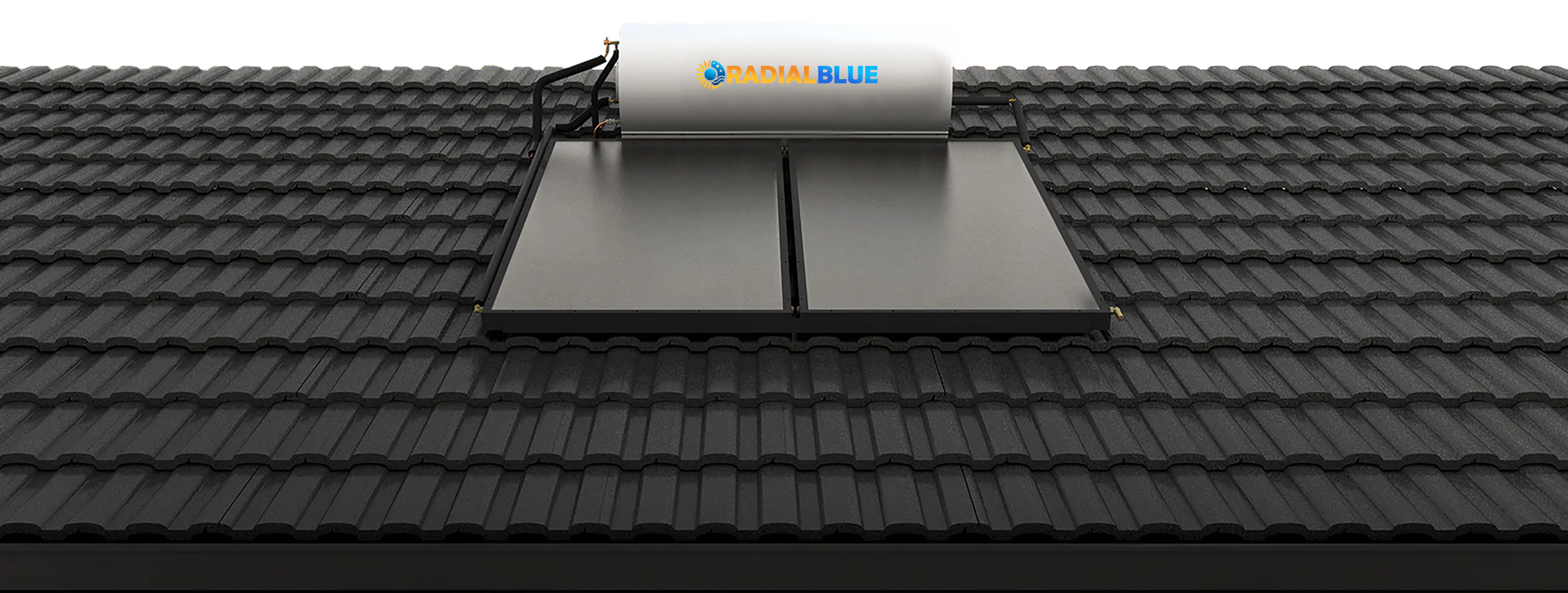 The roof mounted thermosiphon solar water heaters include a horizontal tank that sits above the flat plate collectors on the roof. These systems are highly efficient and use natural thermal convection to circulate hot water from the collectors to the tank without the need for electric pumps. These systems bring both the solar collectors and storage tank to the one roof location, making them ideal for applications where available ground space is limited.