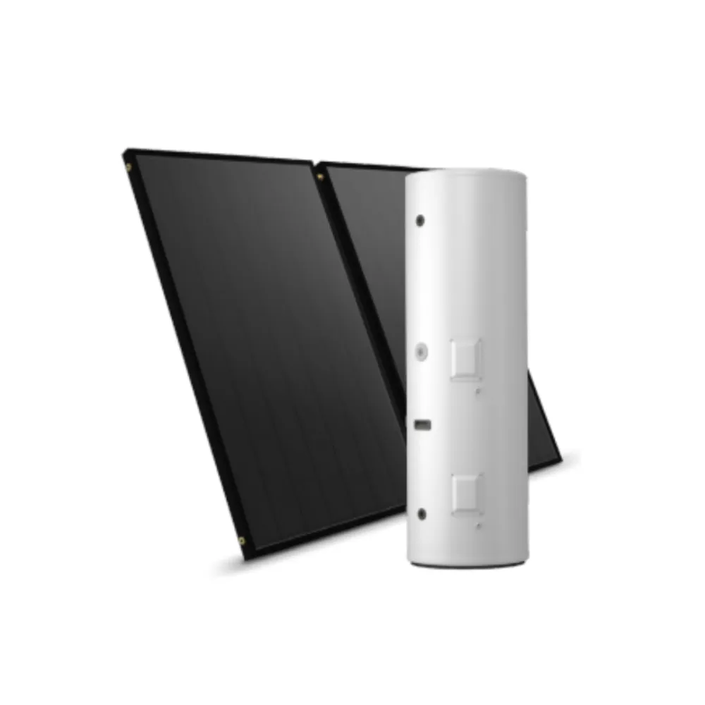 On days of high consumption and/or low solar gain an in tank electric element assists in reaching the desired water temperature