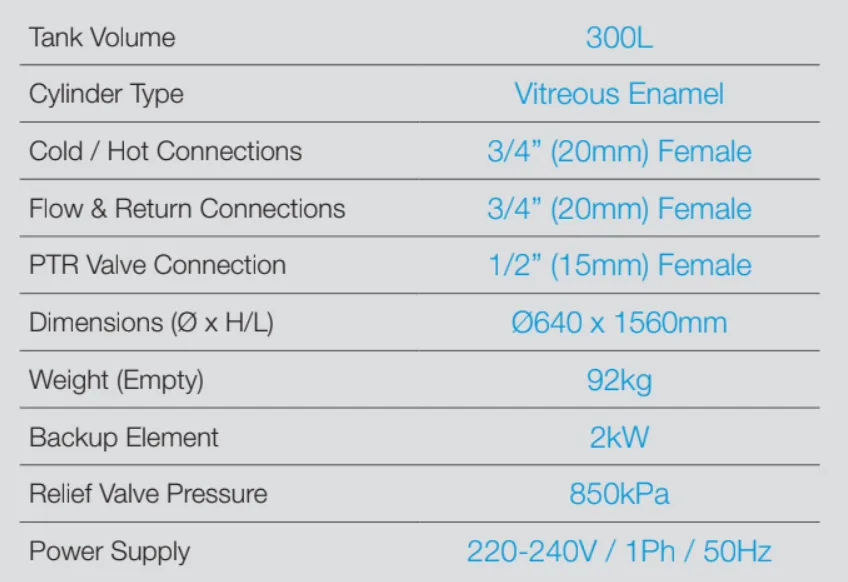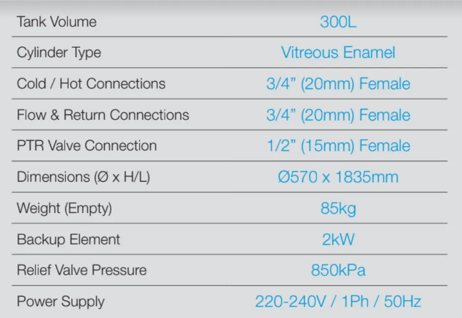 Complimented with an inbuilt 2kW backup electric element to ensure reliable hot water in any weather.